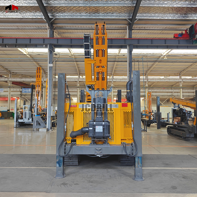JCD1500 wurde für Tiefkernbohrungen entwickelt, die maximales Drehmoment, erhöhte strukturelle Festigkeit und kontinuierliche Stabilität unter hoher Belastung erfordern. Es unterstützt HTW-, NTW- und BTW-Bohrungen bis zu einer Tiefe von 1800 Metern und eignet sich somit für anspruchsvolle Mineralexplorations- und geotechnische Projekte. Angetrieben von einem leistungsstarken 150 kW WEICHAI-Turbodieselmotor und unterstützt von einem Hochleistungs-Hydrauliksystem mit 330 l/min liefert das Bohrgerät bis zu 4000 Nm Rotationsdrehmoment und eine starke hydraulische Reaktion für hochresistente Formationen. Der integrierte bodenberührende Mast unterstützt eine Winkeleinstellung von 45° bis 90°, während der 3500 mm Vorschubhub und die 36-Tonnen-Zugkraft einen reibungslosen Betrieb unter tiefen und komplexen Bohrbedingungen gewährleisten.