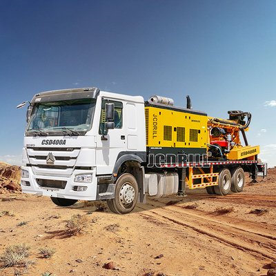 CSD400A 6 x 4 SINOTRUK HOWO LKW-montierte Wasserbohranlagen sind sehr flexibel auf schwierigen Straßen und können in vielen Bereichen wie Ressourcenforschung, Hydrologie,Kohlenbodenmethan, flache Schicht von Schiefergas, Erdwärme usw. und kann auch für die Gasgewinnung oder Rettungsarbeiten in Kohlengruben verwendet werden.